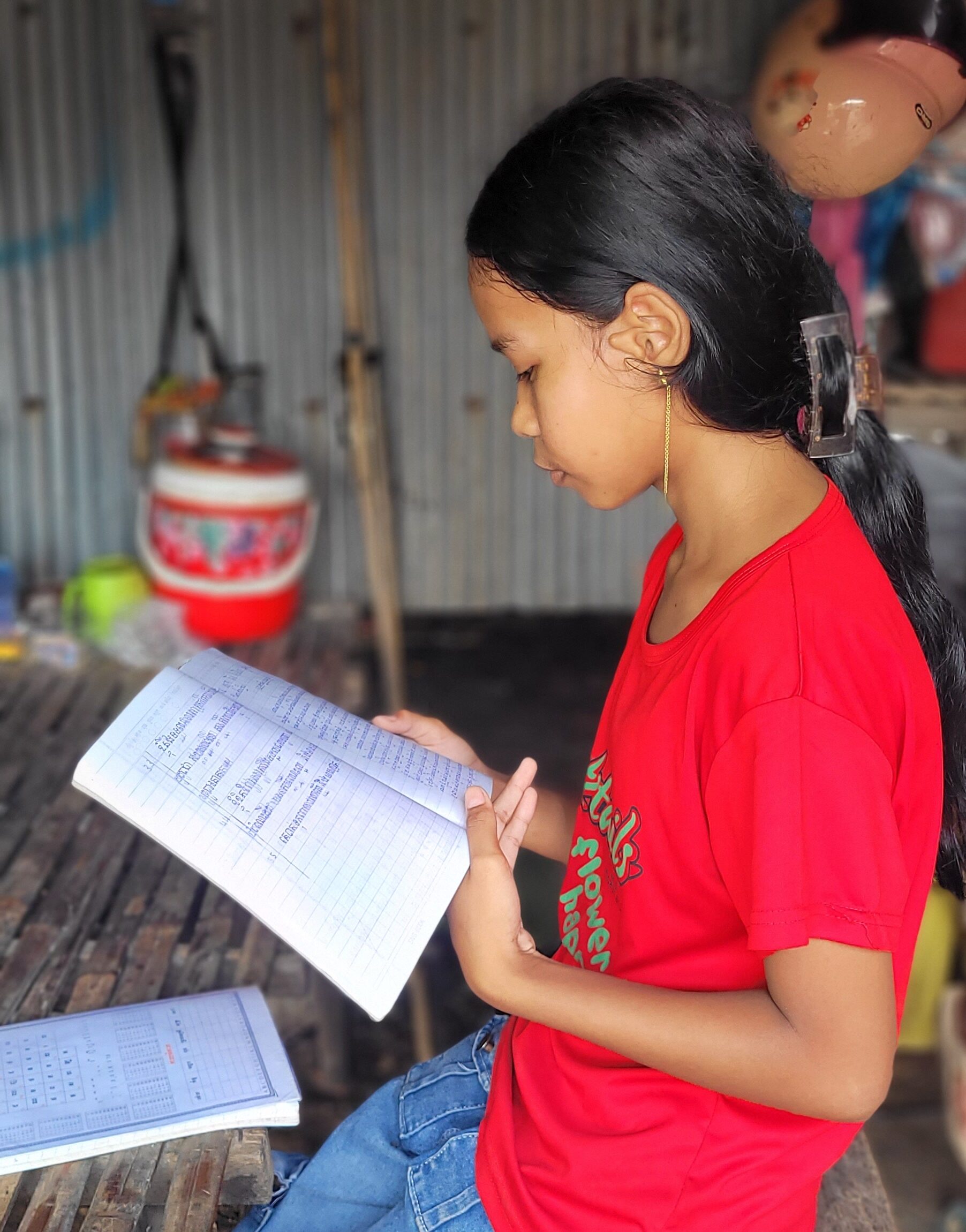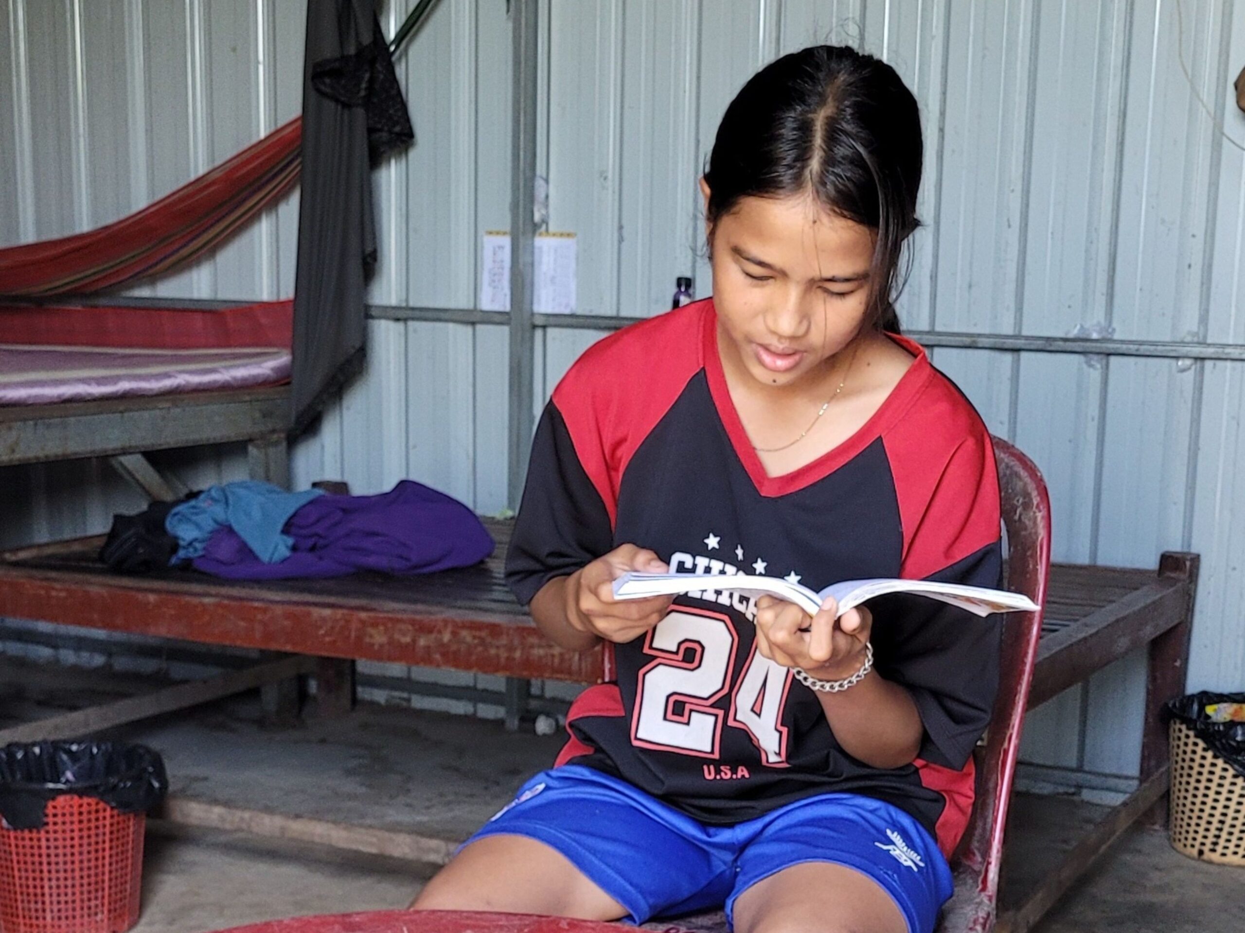 In 2023, her father registered her in Damnok Toek’s Non-Formal Education program after being referred through the Child Safe Agency network.