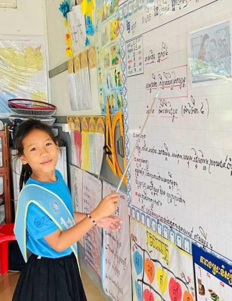 Sreylin has become more confident and expressive. Although she occasionally misses classes to help her family collect trash, she actively participates in lessons, communicates openly with her teachers and peers, and shows genuine joy in her daily school routine. “Now I feel happy every day when I come here. I like reading and writing, and my teachers always help me.” Sreylin explains. She also tells that her dream is to become a Khmer literature teacher. With each lesson, she moves one step closer to that goal, inspired by the teachers who support her today.